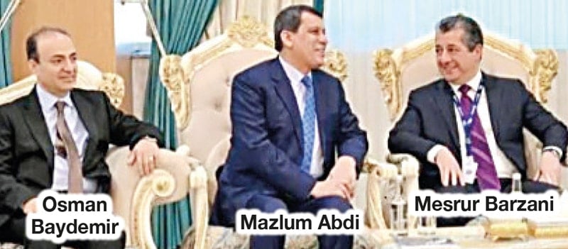 “Büyük Kürdistan Zirvesi” olarak da tanımlanan konferans için Türkiye’nin 20 milyon lira ödülle aradığı Abdi’yi, SDG Dış İlişkiler Sorumlusu İlham Ahmed ile Kürdistan Demokrat Parti (KDP) yöneticisi Hoşyar Zebari karşıladı.