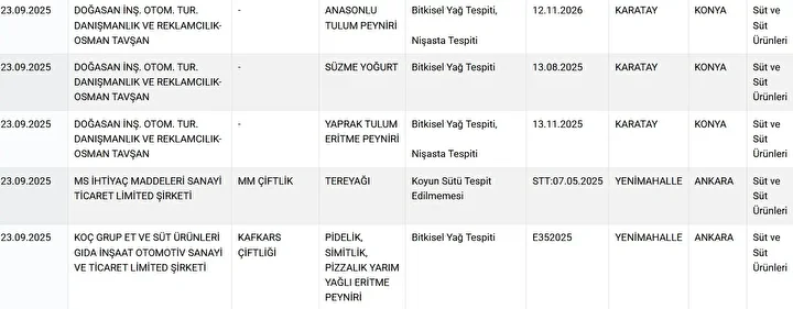 Gıdada hile yapan firmalar ve ürünleri şöyle:
