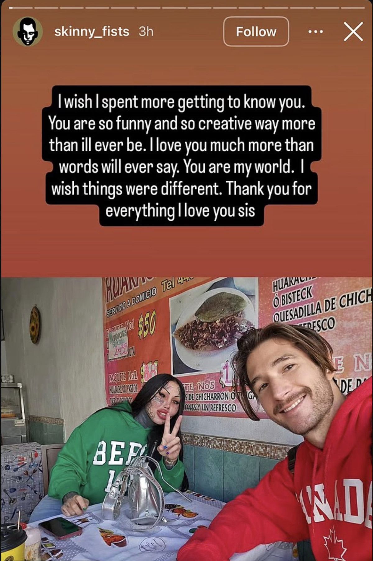 Genç ünlünün erkek kardeşi Ivan, Instagram hikayesinde kız kardeşiyle bir fotoğrafını, “Keşke seni tanımak için daha çok zaman harcasaydım. Benim olabileceğimden çok daha komik ve çok daha yaratıcısın. Seni kelimelerle açıklanamayacak kadar çok seviyorum. Keşke böyle olmasaydı. Her şey için teşekkür ederim kardeşim.” mesajıyla birlikte paylaştı.
